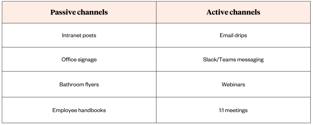 Most HR teams rely on one or two touchpoints, like the company intranet or a single all-hands email. But in marketing, distribution is half the battle. To get through, you need a multi-channel approach.