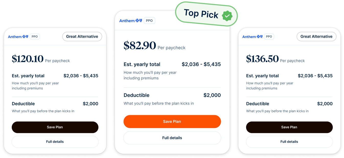 Healthee’s Plan Comparison Tool allows employees to input potential health scenarios for the future and compare the coverage offered by each plan.