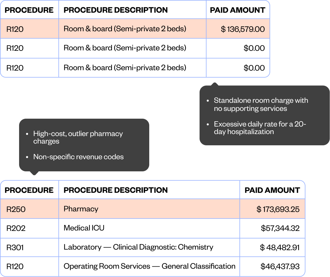 The AI engine covers multiple high-impact categories, such as room and board, ICU, nursery, pharmacy and drugs, laboratory services, imaging, and much more.